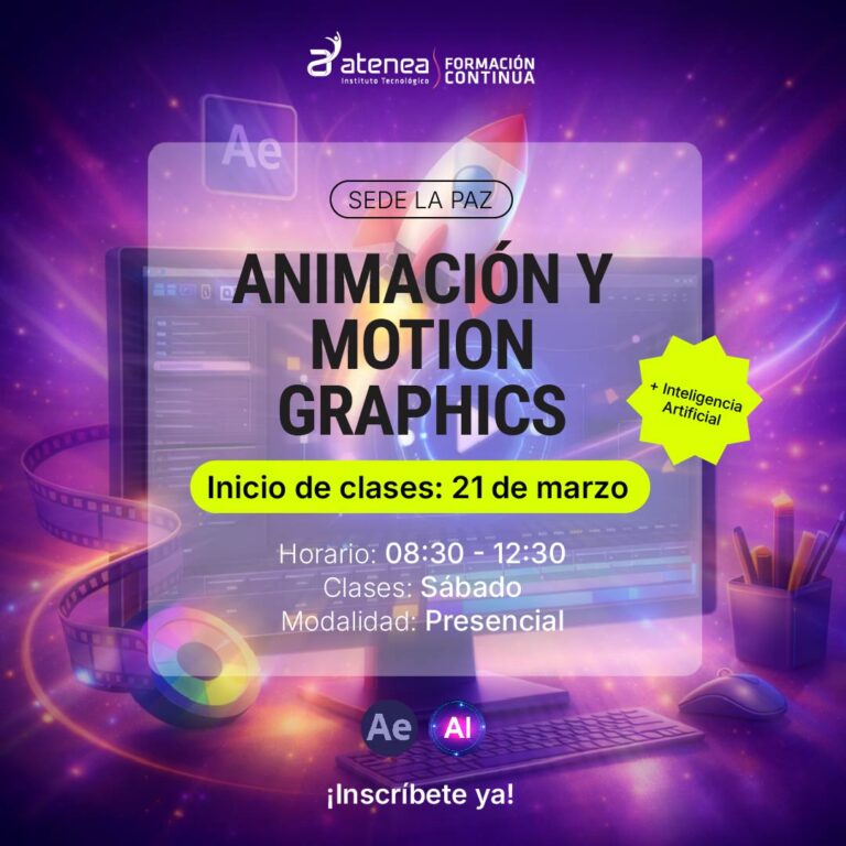 Desarrolla animaciones de alto impacto en After Effects ⚙️, integra inteligencia artificial 🤖 y potencia tus campañas visuales con estrategia de marketing digital.📈💻 CURSO PRESENCIAL - SEDE LA PAZ 🌐