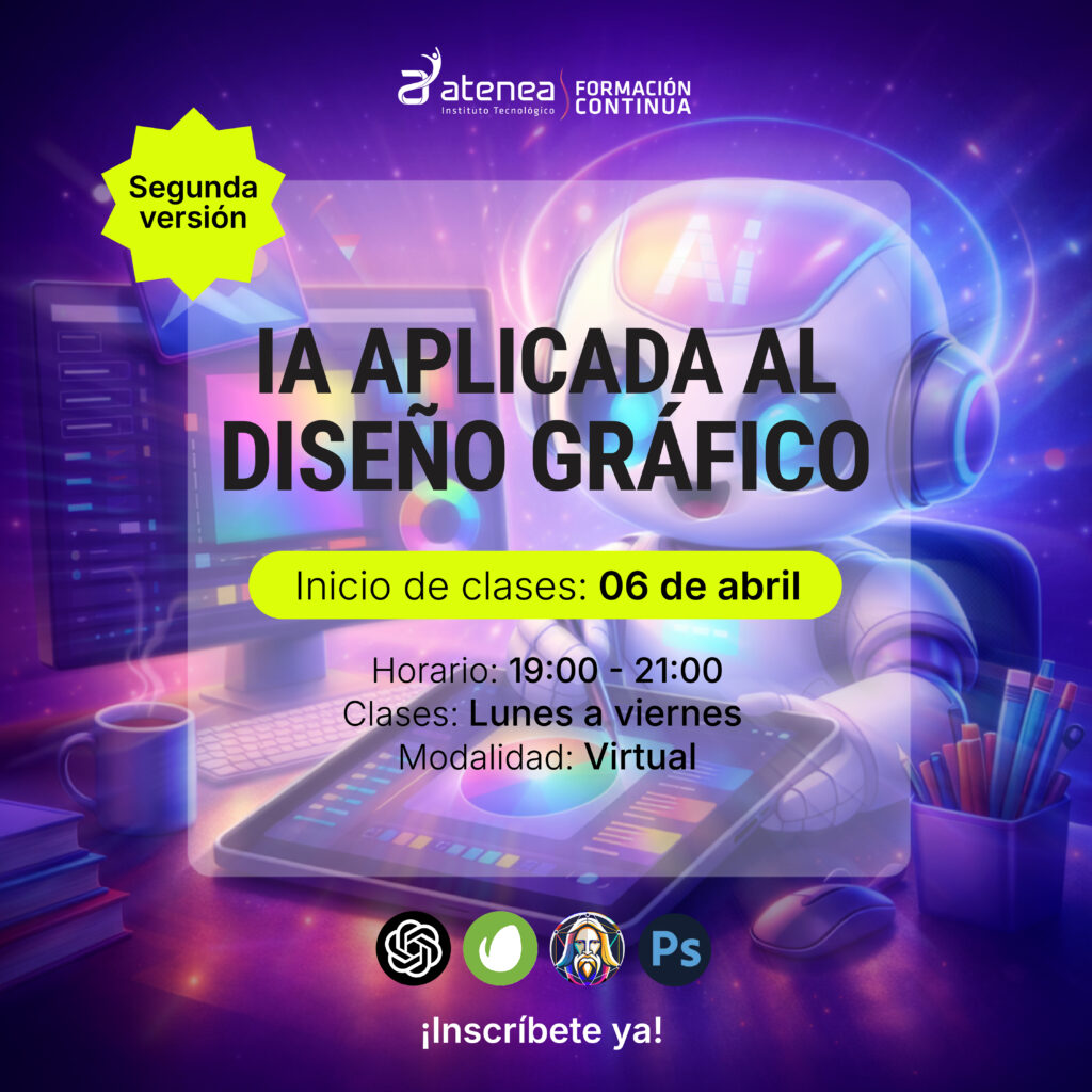 🚀 Aprende a integrar la IA en tu proceso creativo para optimizar tiempos, generar ideas potentes y crear piezas visuales de alto impacto.✨💻 CURSO PRESENCIAL - SEDE EL ALTO🌐