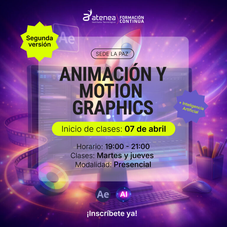 Desarrolla animaciones de alto impacto en After Effects ⚙️, integra inteligencia artificial 🤖 y potencia tus campañas visuales con estrategia de marketing digital.📈💻 CURSO PRESENCIAL - SEDE LA PAZ🌐